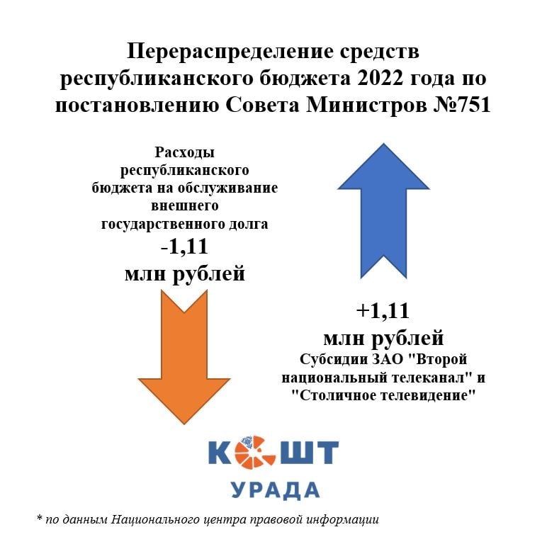«В заключение отметим, что информация о сокращении расходов бюджета на обслуживание внешнего госдолга и информация о выделении этой же суммы на поддержку государственных телеканалов находится в одном постановлении Совмина. Это либо, выражаясь языком современного беларуского суда, «демонстративный, наглый и вызывающий» поступок, либо откровенная глупость. Никто даже не попытался скрыть причинно-следственную связь, хотя бы для приличия», — подытожили экономисты.