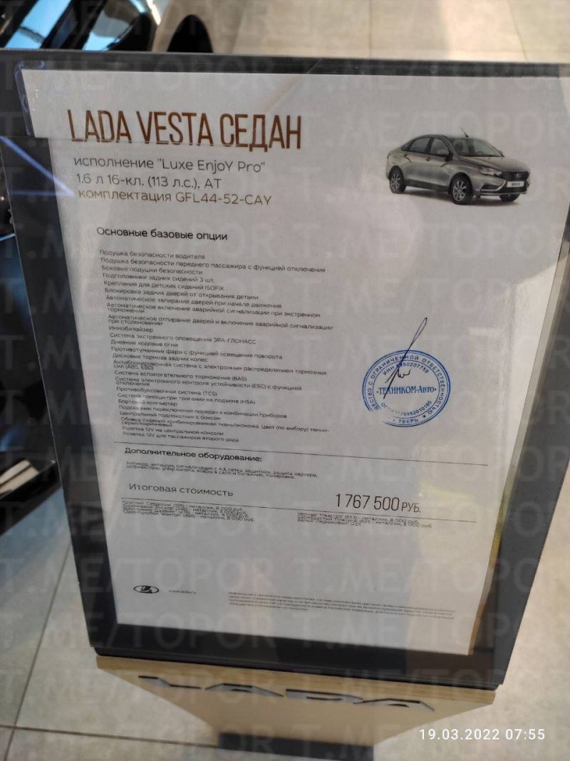 Например, подписчик одного из российских телеграм-каналов сфотографировал 19 марта обновленные цены на автомобили LADA в одном из дилерских центров. LADA Granta Седан в комплектации Classic стоит 1 153 900 российский рублей. А LADA Vesta Седан в комплектации Luxe EnjoY Pro стоит 1 767 500 рублей.
