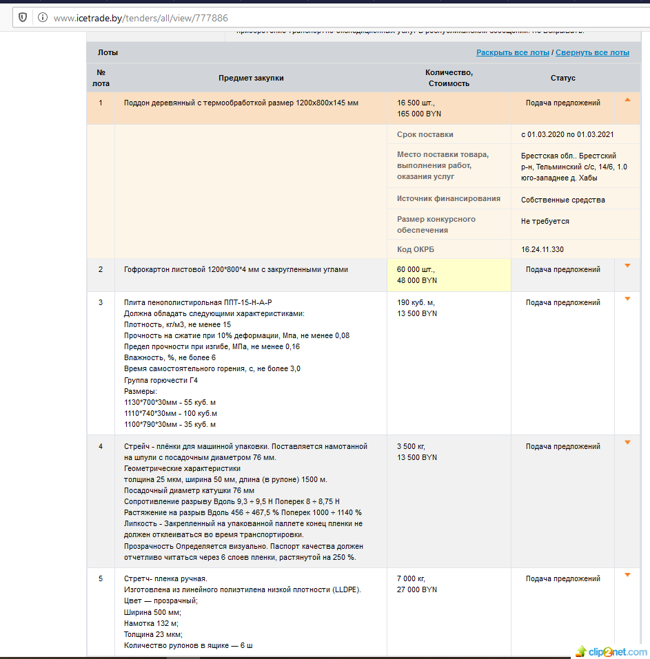 На прошлой неделе на сайте госзакупок Республики Беларусь был размещен тендер №2020-777886 «Запрос ценовых предложений» по закупке упаковочных материалов для аккумуляторного завода. Речь идет о большом количестве деревянных поддонов, листового гофрокартона, пенополистирольных плит, стрейч-пленки для машинной упаковки и т. д. На это обратили внимание активисты движения по борьбе с аккумуляторным заводом. Некоторые из них высказали предположение, что это доказательство того, что не введенное в эксплуатацию предприятие готовится к запуску.