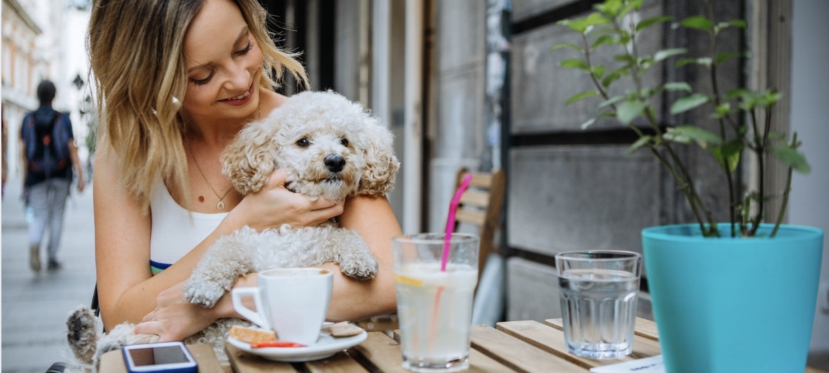 Девушка с двумя собаками в кафе. Иллюстративное фото с canva.com.