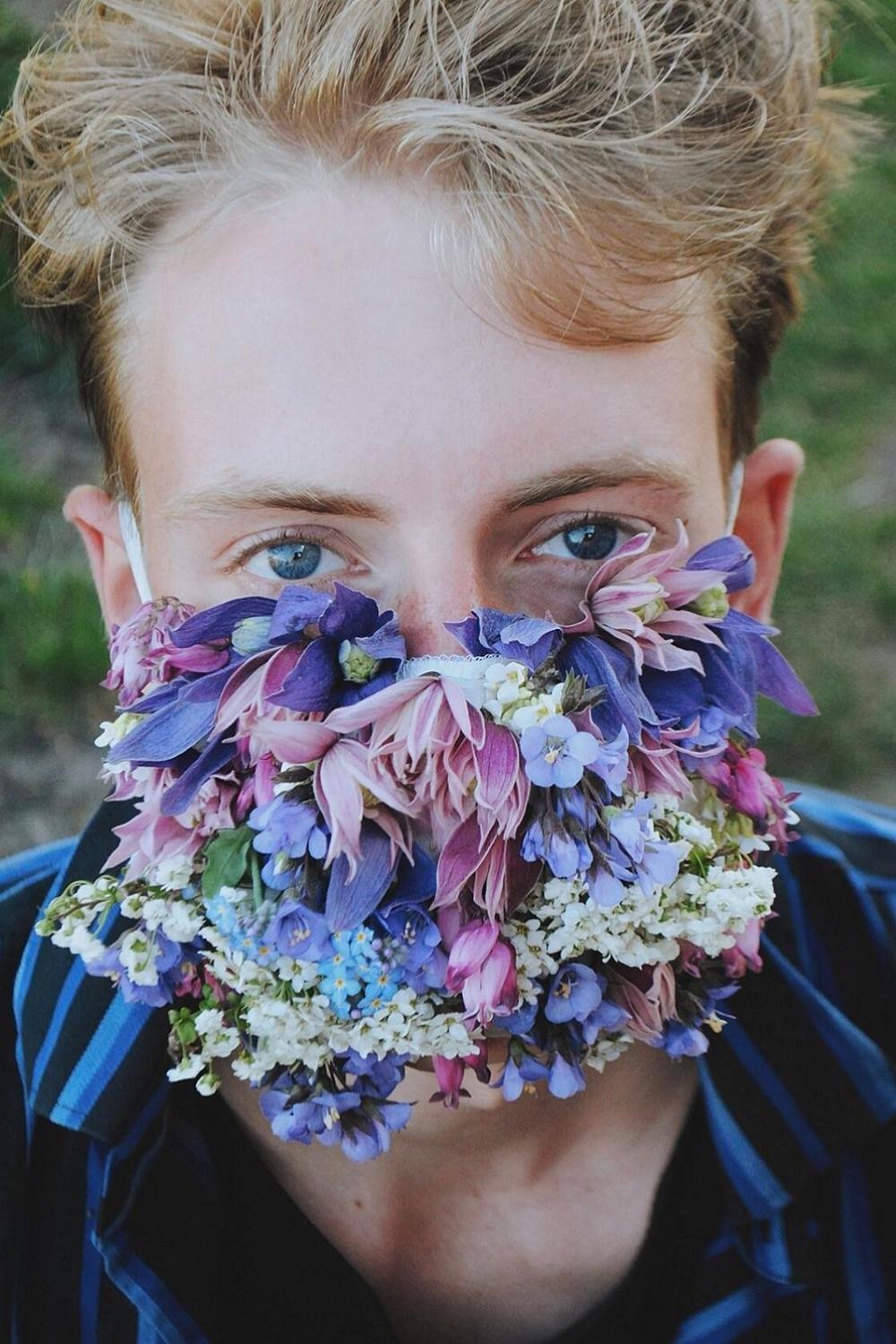 «Конечно, чтобы цветы не вяли, они должны находиться в воде или в специальной губке. Но ее в маску не вставишь, поэтому после фотосессии я все цветочки повынимал и поместил в воду», — рассказывает парень.