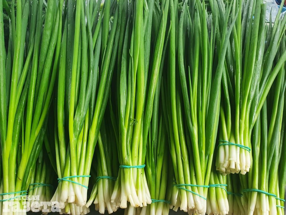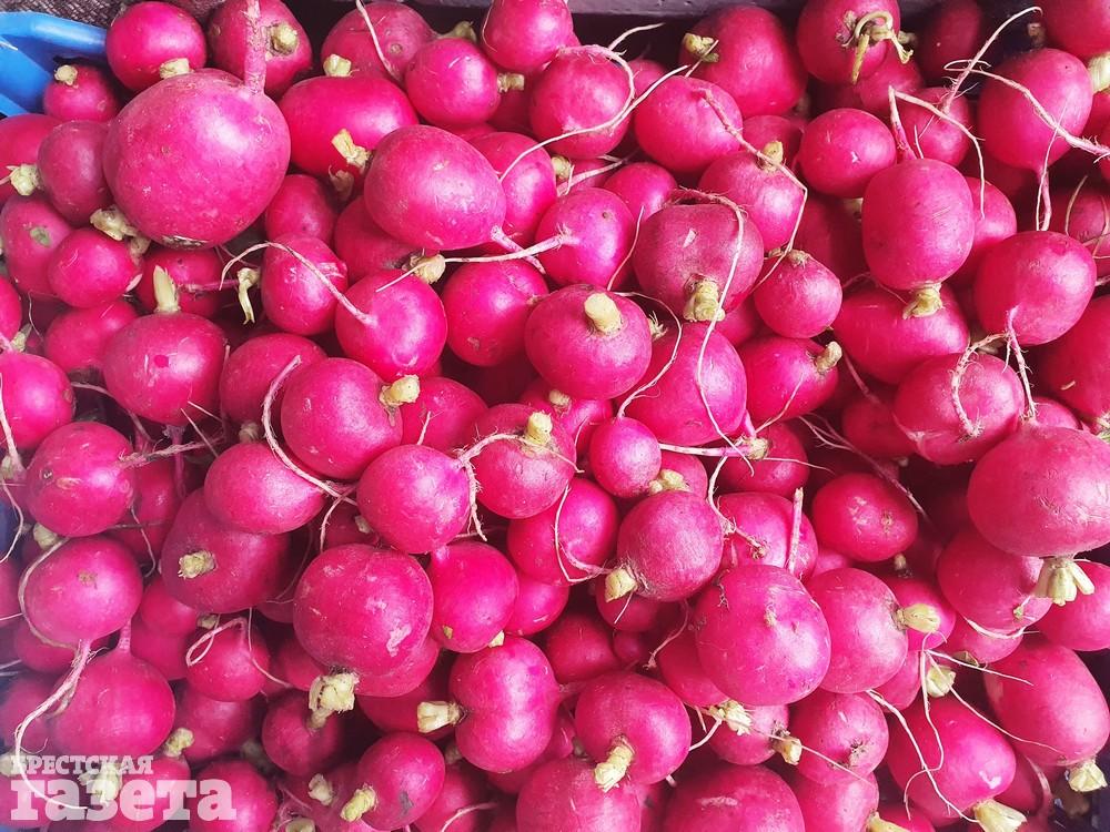 Есть еще на рынке по-прежнему зеленый лук и редис.