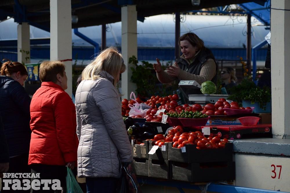 По-прежнему на брестской «колхозке» дешевеют помидоры. На этой неделе их можно купить по 4 — 9 рубля за килограмм. На прошлой за них просили 5,50 — 14 рублей. Цена на огурцы также падает. Молодые домашние огурчики продают по 4 — 4,5 рубля за килограмм, еще на прошлой неделе они были по 6 рублей. Правда, уже не найти на рынке длинных огурцов.