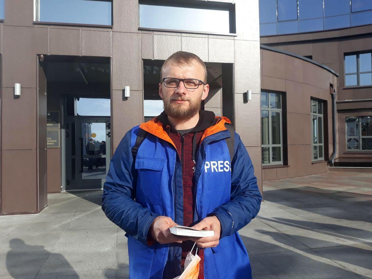 Журналист Максим Хлебец возле Дома правосудия 22 октября после того, как суд отправил его дело на доработку. Фото: Ирина ОНИЩУК