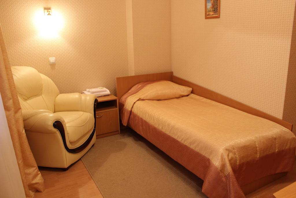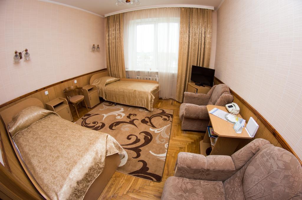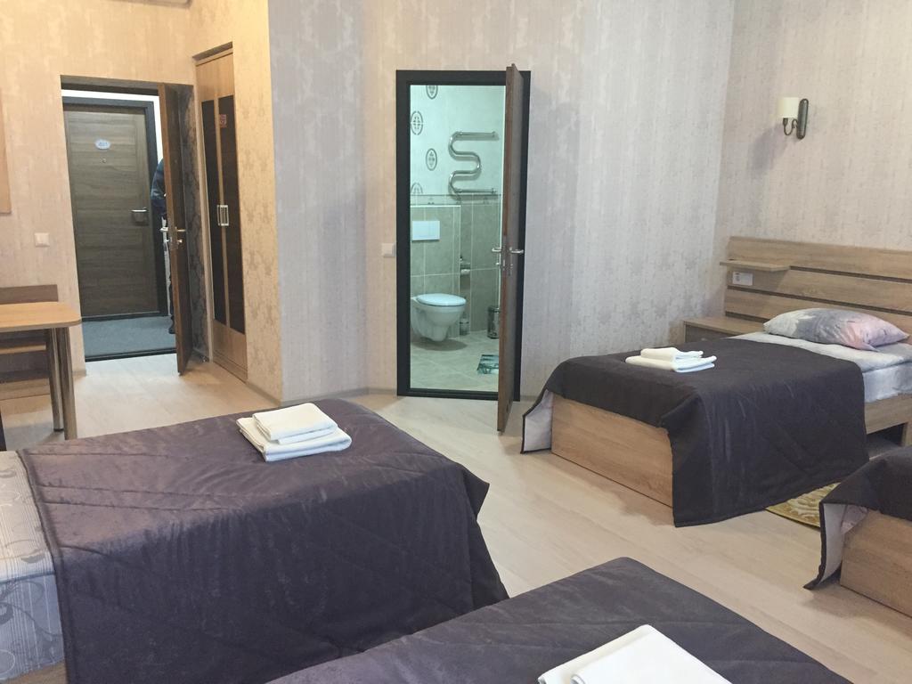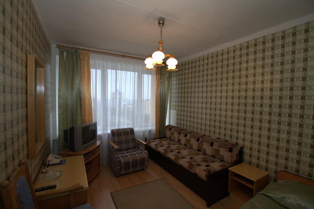 «Хорошая гостиница с отличным расположением — до центральной пешеходной улицы Советской метров 200. Внешне больше похожа на поликлинику, 1-3 этажи — учебный центр, 4-5 этажи — сама гостиница. Немного советских времен, но это даже прикольно)) почти как квартира, есть прихожая, гостиная с диваном и телевизором и собственно спальня, в ванной душевая кабина. Идеальная чистота, в номере чайник, холодильник, фен. На месте можно заказать завтрак», — оставила свой отзыв Мария из России.
