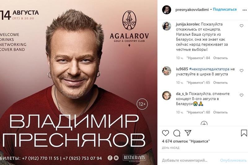 «Пожалуйста, просим отменить Ваш концерт в Беларуси. Мы вам любим и уважаем, но очень просим не приезжать 8 августа в Беларусь и не поддерживать белорусскую власть».