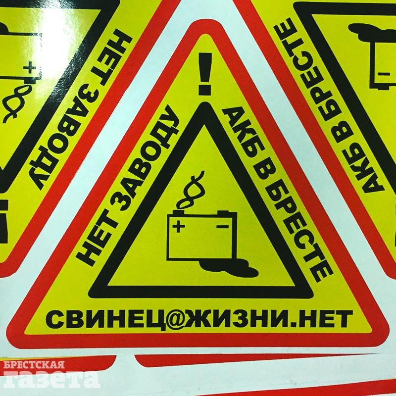 В Бресте появились желтые наклейки на автомобили, которые отражают негативное отношение к появлению аккумуляторного завод в СЭЗ «Брест» в 4 километрах от областного центра.