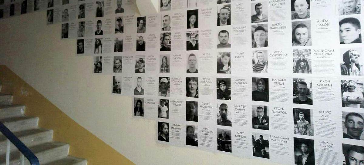 Фотофакт. В одном из подъездов Минска развесили портреты политзаключенных, но понравилось это не всем