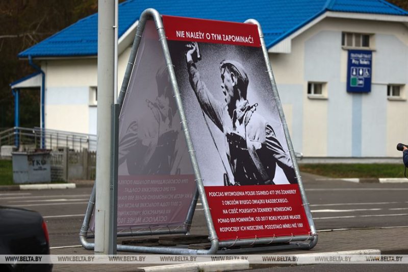Стенды установлены по инициативе ветеранских организаций Бреста. По словам пограничников, они якобы привлекают внимание проезжающих через пункт пропуска. Люди подходят, смотрят и читают. Информация размещена на русском и польском языках.