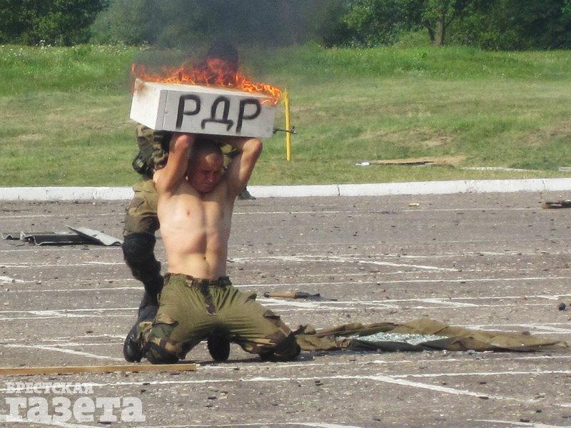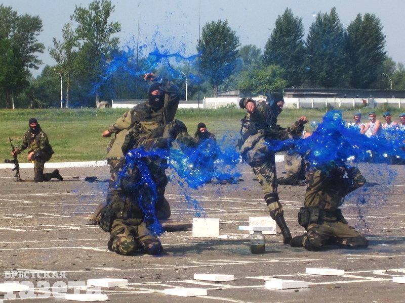 Праздничные мероприятия проходили утром 2 августа в 38-й отдельной гвардейской Венской Краснознаменной десантно-штурмовой бригаде. Десантники представили зрителям шоу с боевыми эпизодами: взрывами, стрельбой из автоматов и зениток, прыжками с парашютом. Также подготовленные бойцы лежали на гвоздях, десантировались из вертолета с небольшой высоты и показали «вальс зениток», в котором кроме девушек в красивых платьях «танцевала» и военная техника.