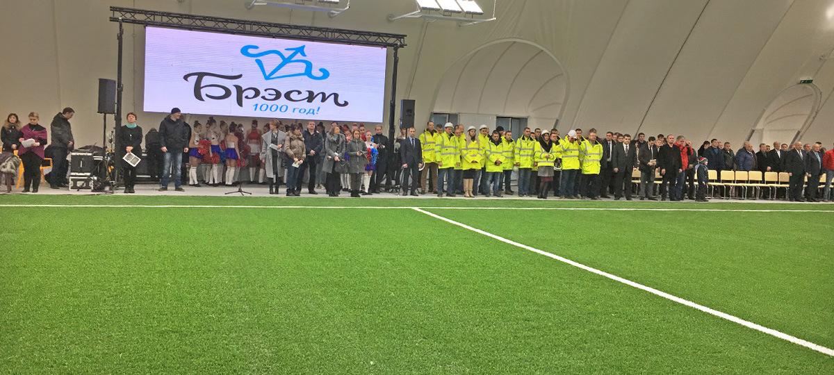 «Город Брест издавна славится своими футбольными традициями, он подготовил много спортсменов для Беларуси по всем видам спорта, — сказал премьер-министр Сергей Румас. — Мне как руководителю Федерации футбола приятно, что в Бресте проживают самые преданные футбольные болельщики. Уже два года подряд они занимают первое место по посещаемости на своих домашних матчах. Поэтому от имени Белорусской федерации футбола я хочу поздравить брестчан с этим прекрасным подарком к 1000-летию города — футбольным манежем!»
