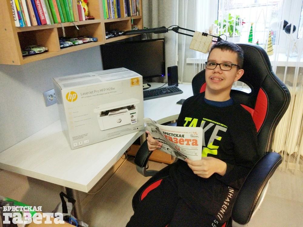 Благодаря отзывчивости наших читателей и пользователей соцсетей эту мечту удалось осуществить – сумма, необходимая для покупки принтера, была собрана аккурат под Новый год. А перед Рождеством, 6 января, подарок был доставлен адресату. Никите его вручили главный редактор «БГ» Виктор Марчук и заместитель директора Татьяна Пискур.