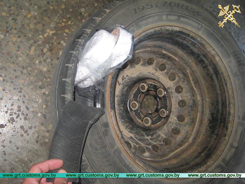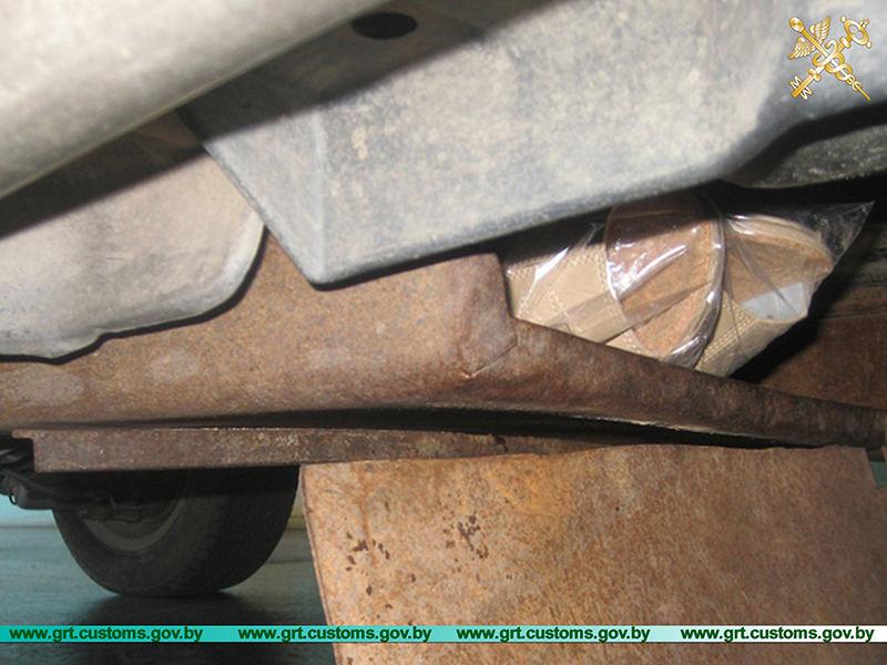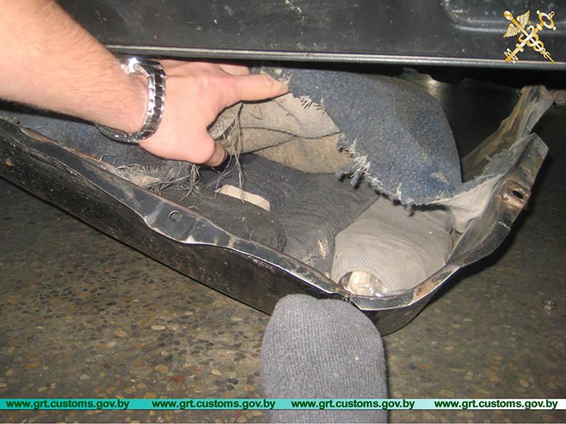 Они были обнаружены и под обшивкой салона, и в покрышках. В результате из автомобиля извлекли более 100 пар обуви, 200 штук чулочных изделий, а также ноутбук, который находился под днищем автомобиля.