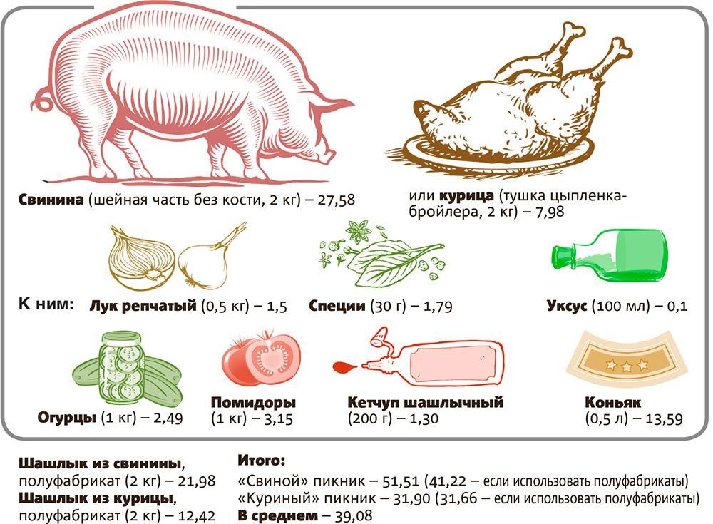 Если купить свиной полуфабрикат, то застолье на природе опустошит кошелек на 41,22 рубля (в прошлом году – 34,94 рубля, 35,74 рубля в 2017-м).