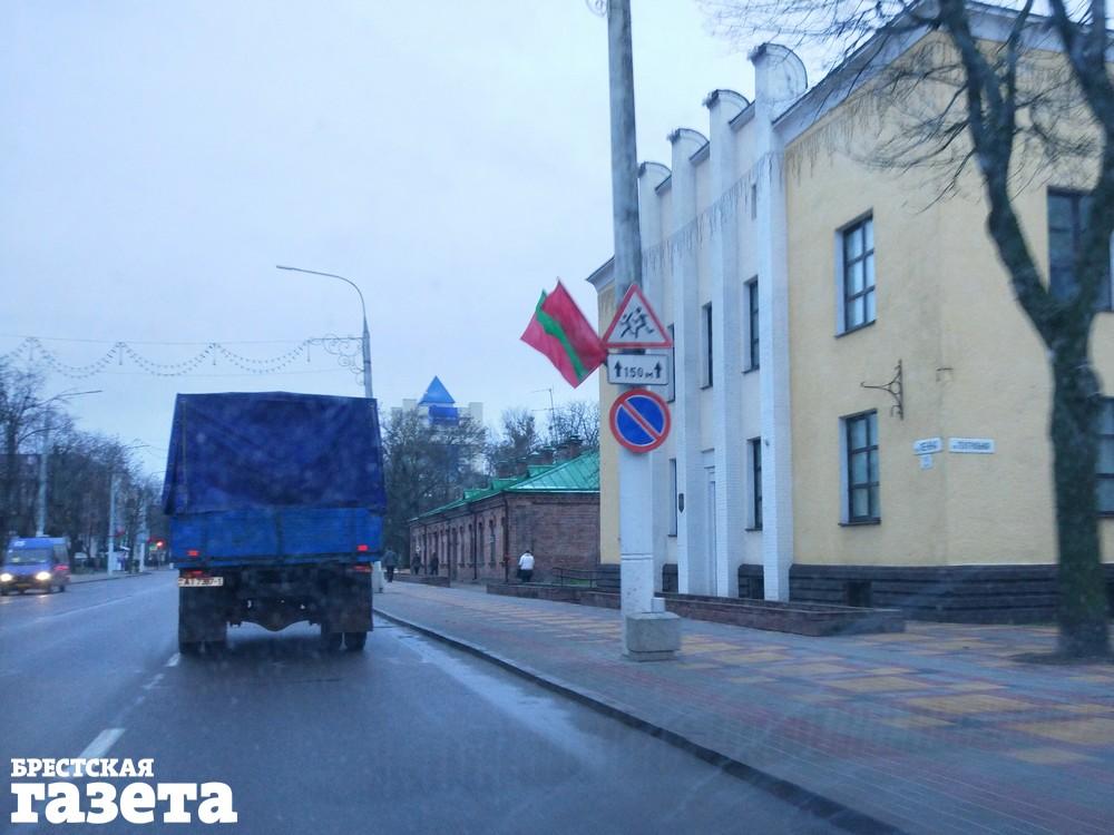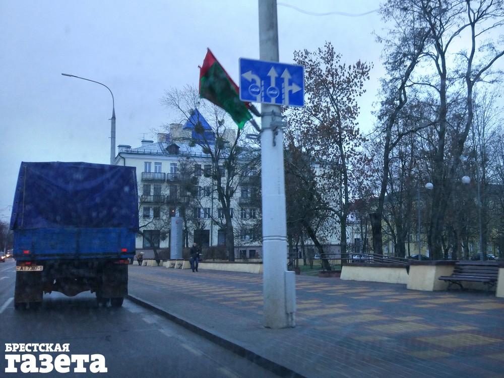 К приезду Румаса и Медведева Брест украсили белорусскими и российскими флагами (фото, видео)