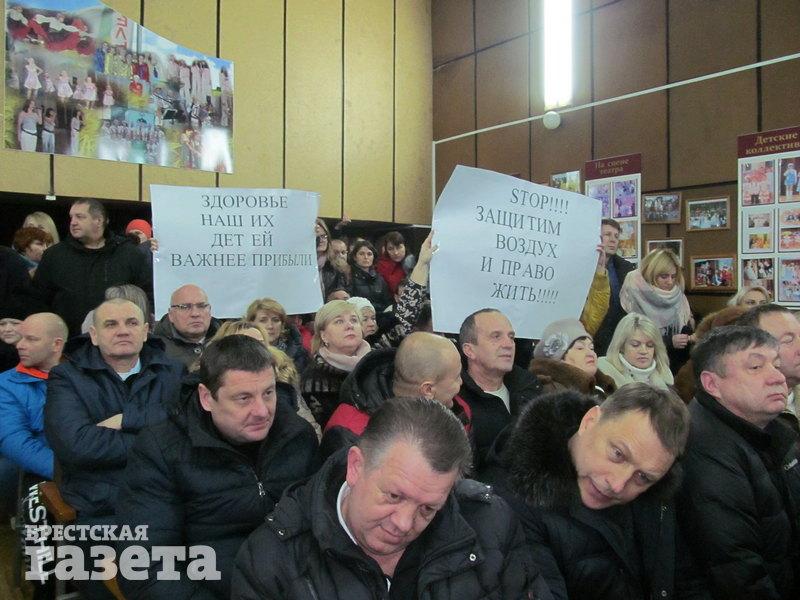 Вечером 15 января во Дворце культуры в д. Тельмы-1 Брестского района состоялось рассмотрение коллективного обращения жителей района и Бреста по вопросам строительства аккумуляторного завода в 4 километрах от областного центра. Местные власти, администрация СЭЗ «Брест», ООО «АйПауэр», представители охраны природы местного и республиканского уровня и санстанции — с одной стороны и около 4 сотен людей, недовольных строительством завода под Брестом, — с другой. Зал ДК, в котором 295 сидячих мест, был заполнен еще до начала мероприятия. И по настроению людей, по плакатам, с которыми они пришли, было понятно: будет жарко.