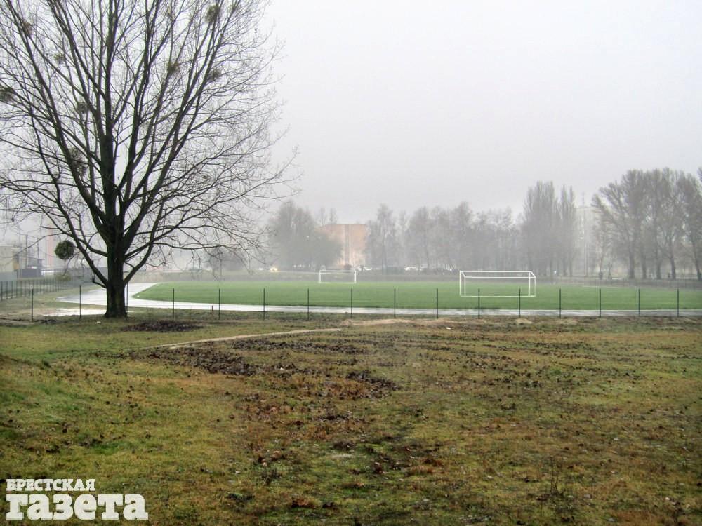 Стадион БрГТУ с футбольным полем и беговыми дорожками