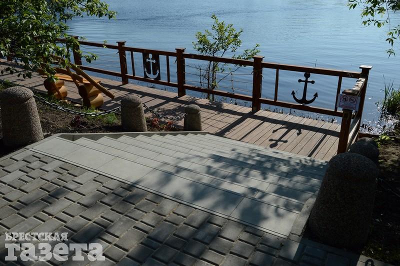 Напомним, лодочная станция на берегу Мухавца расположилась там же, где была и прежняя, слева от пирса, рядом с подъемом на мост. Это место для ведения частного бизнеса выкупил на аукционе индивидуальный предприниматель Александр.