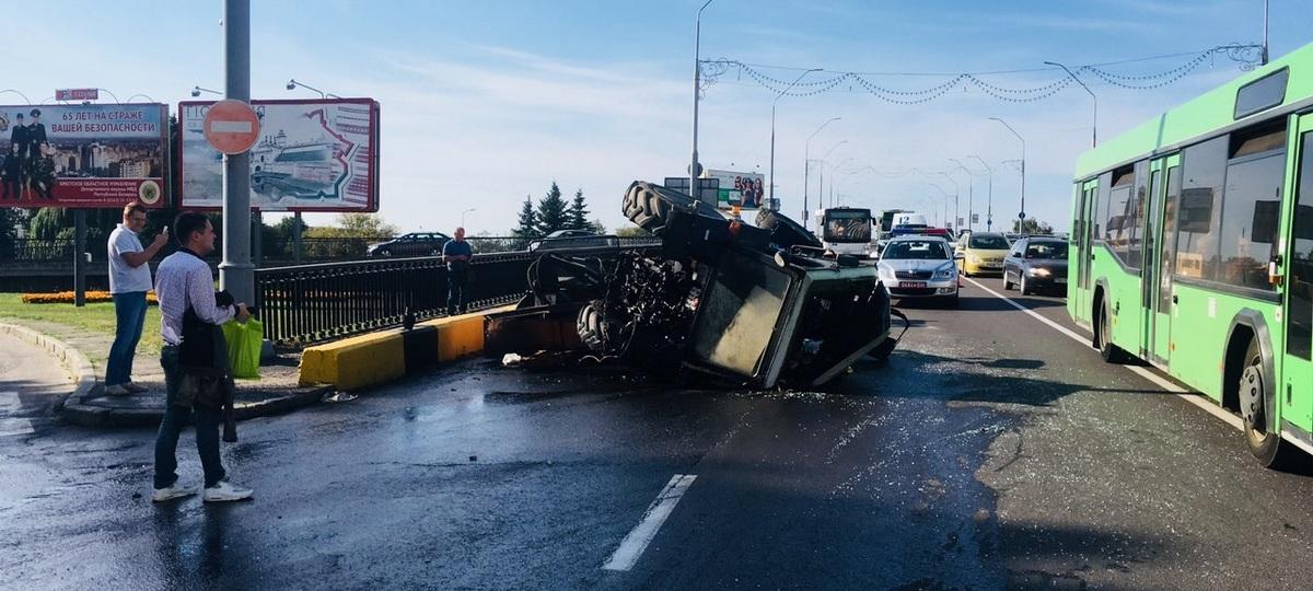 По предварительной информации областной ГАИ, 43-летний водитель трактора МТЗ ехал со стороны улицы Брестских Дивизий в сторону Мицкевича. При спуске с путепровода он наехал на бордюрный камень, в результате транспортное средство опрокинулось.