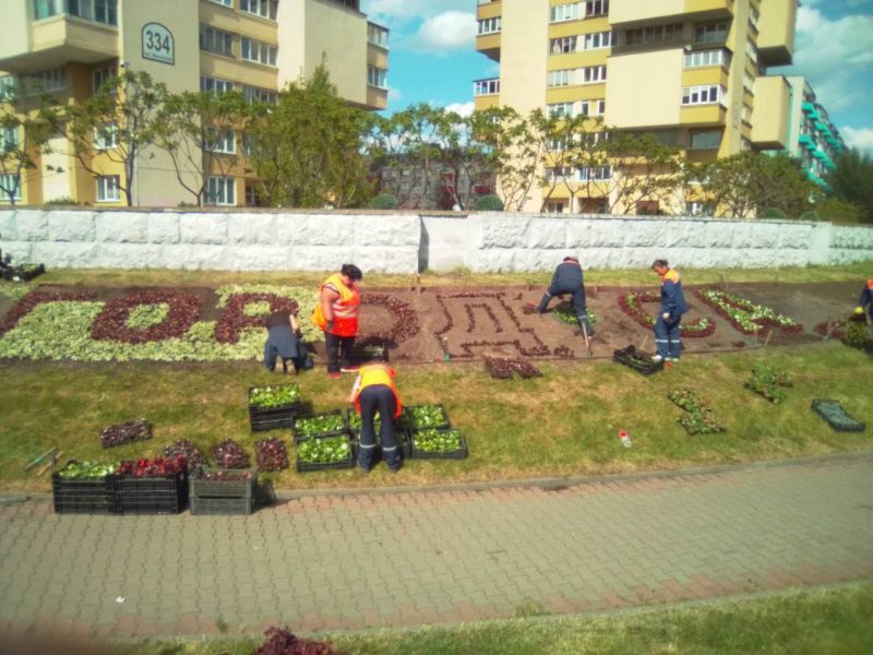 На пересечении улицы Московской и Партизанского проспекта ведётся высадка цветами названия конкурса — «город-сад». На следующей неделе два цветочных ковра с логотипом конкурса и эмблемой-цветком появятся в районе электролампового завода.