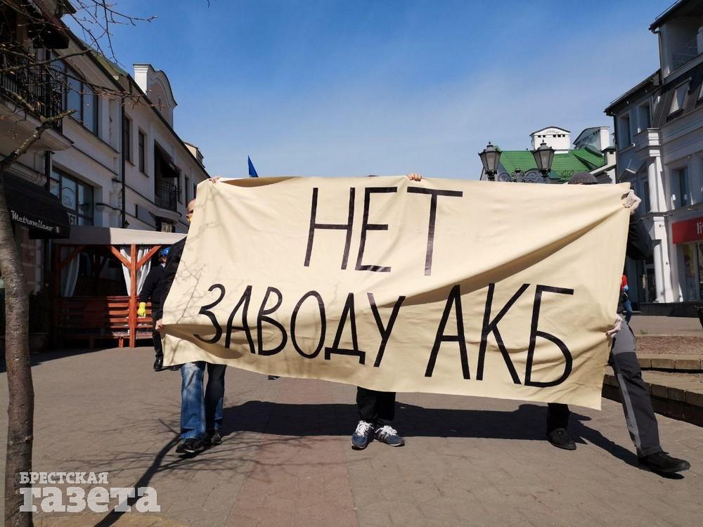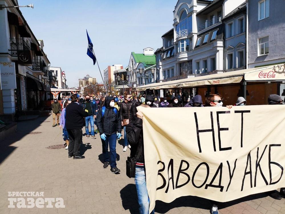 После акции протеста на площади противники завода пошли по центральным улицам Бреста, на улице Советской они развернули растяжку против завода и начали скандировать лозунги «Нет заводу АКБ», «Геноцид не пройдет». Пару раз прокричали «Чиновников на нары».