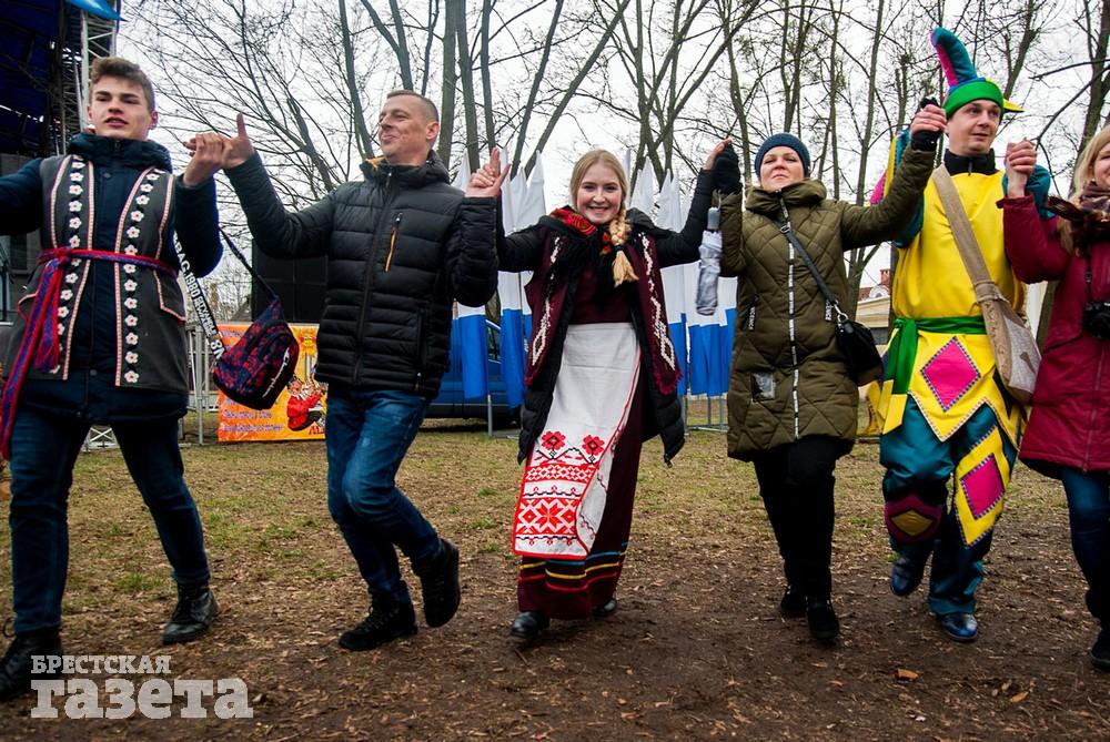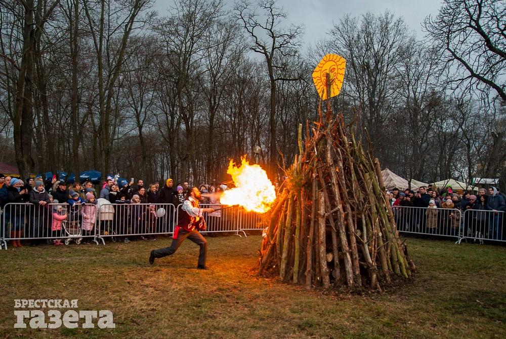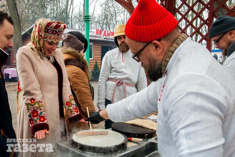 В Бресте веселые проводы зимы, по традиции, проходят, в городском парке культуры и отдыха. Правда, в этом году в наших краях климатическая зима так и не наступила. Вот и на Масленицу снег, выпавший с утра, растаял.