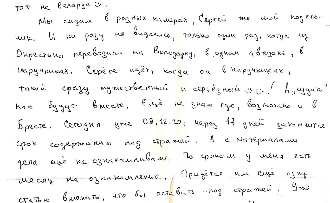 Читайте также: «Рано или поздно будем на свободе»: Редакция «БГ» получила письмо из СИЗО от блогера Александра Кабанова