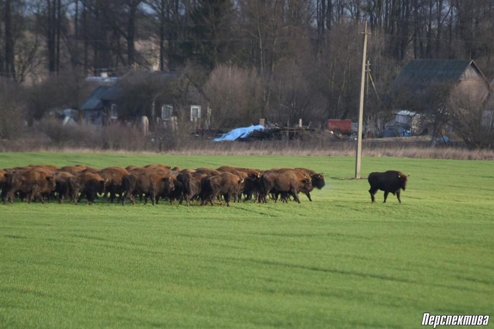Возле поселка Беловежский в Каменецком районе неделю стоит стадо зубров, сообщают читатели.