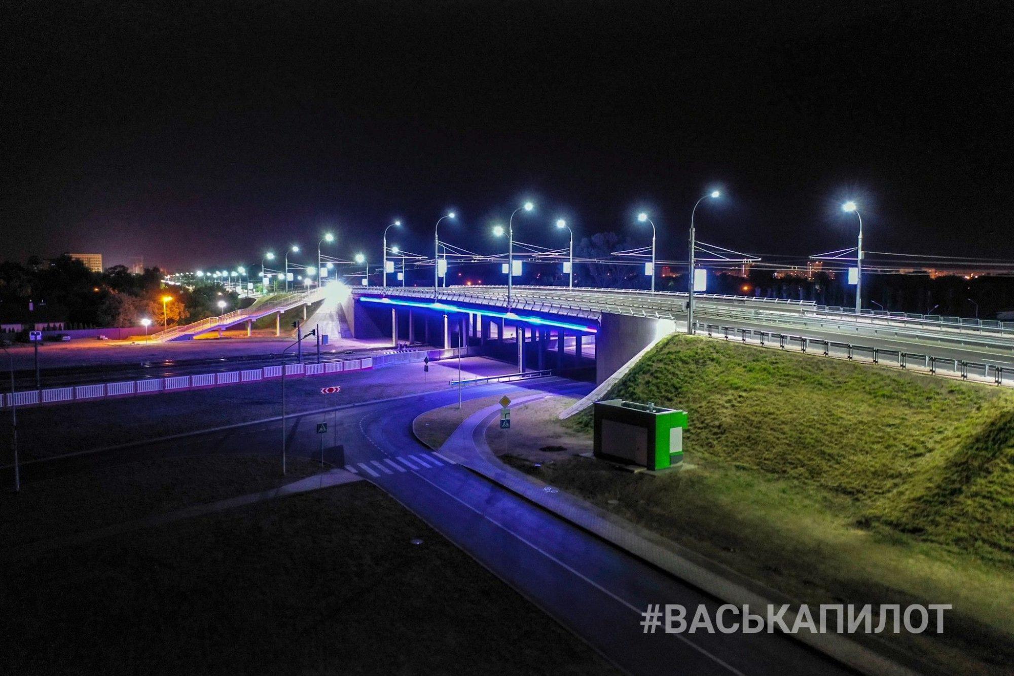 Движение по обеим полосам было открыто 15 мая. К тому моменту дорожники завершили основные работы на Кобринском мосту. Однако им предстояло закончить обустройство пешеходных связей, в том числе и подземных переходов, и привести в порядок прилегающую территорию.