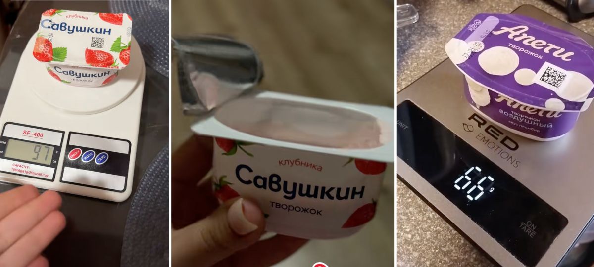 По всей видимости, «технический сбой» на производстве у «Савушкина продукта» — дело привычное, потому что совсем недавно в TikTok появилось аналогичное видео. На этот раз — от беларуски, которая тоже обнаружила недовес в творожке с клубникой. И по ее словам, это происходит уже не первый раз.