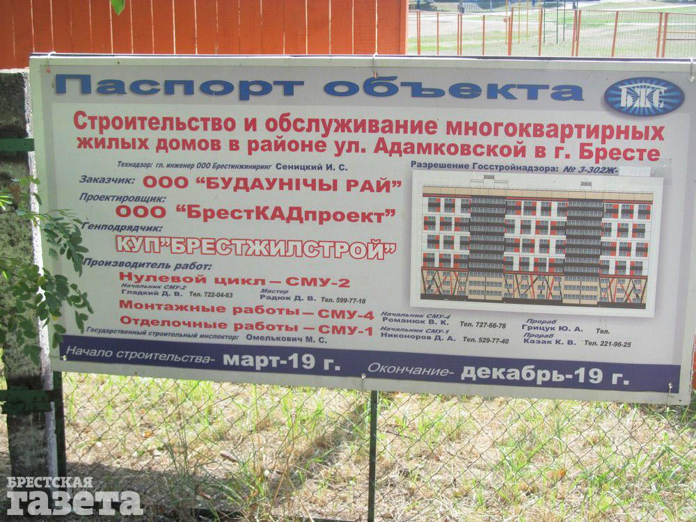 Как указывает паспорт объекта, работы по их возведению начались в марте этого года. Заказчиком выступает ООО «Будаўнічы рай». Один из домов уже возведен, началось строительство второго.