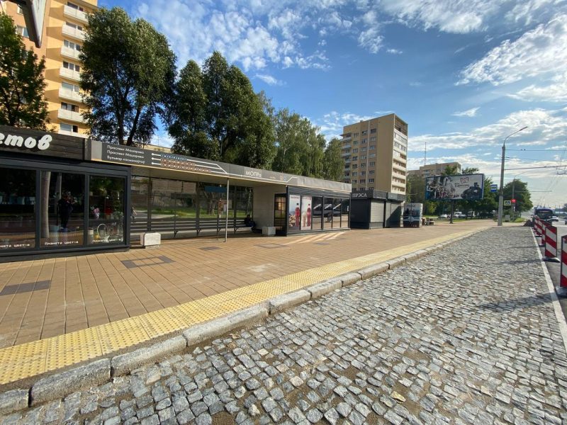 «По такому пути решили пойти, потому что камень более долговечен. Чтобы покрытие не просаживалось, специалисты делают армированные бетонные подушки под основание остановочного пункта. Гранитный камень используем, исходя из опыта Гомеля, Гродно. Бетонная плитка начинает разрушаться буквально через года два», — пояснил Яковчик.