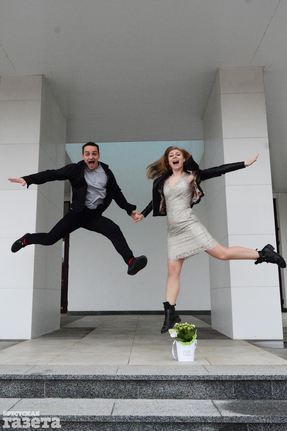Кстати, после росписи молодожены поспешили на спектакль «Сивка-Бурка», в котором Екатерина играет царевну, а Артем — коня.