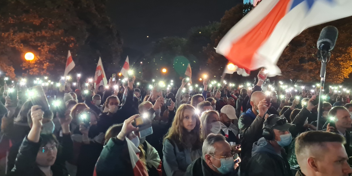 Прежде чем к микрофону подошла Светлана Тихановская, выступили ее соратники, члены команды, представители общественных организаций и движений, польских властей. Они говорили о ситуации в Беларуси, политзаключенных, продолжающихся репрессиях, помощи и поддержке со стороны европейских стран, солидарности западного общества и политиков с беларуским народом.