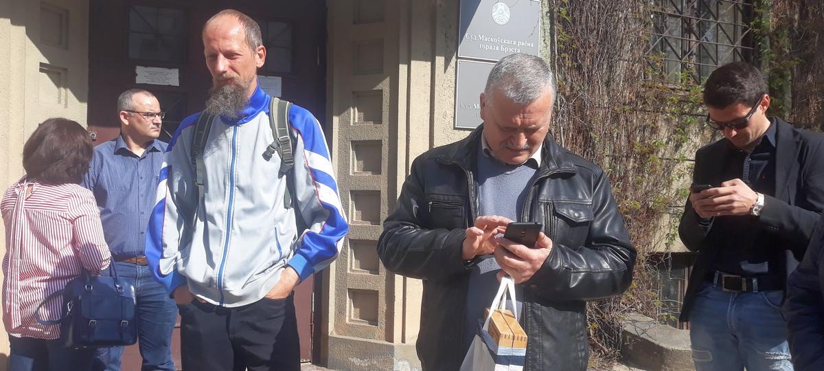 В пятницу 26 апреля в суде Ленинского района Бреста состоялся суд над Денисом Малышенко, Сергеем Свирским, Владимиром Козловским, Демьяном Лепесевичем и правозащитником Владимиром Величкиным. Их привлекли к административной ответственности за шествие по Советской против завода АКБ и пикетирование возле ЦУМа 7 апреля. До суда все пятеро почти трое суток отсидели в ИВС. В начале процесса судья Святослав Калина объявил, что их дела соединены в одно производство.