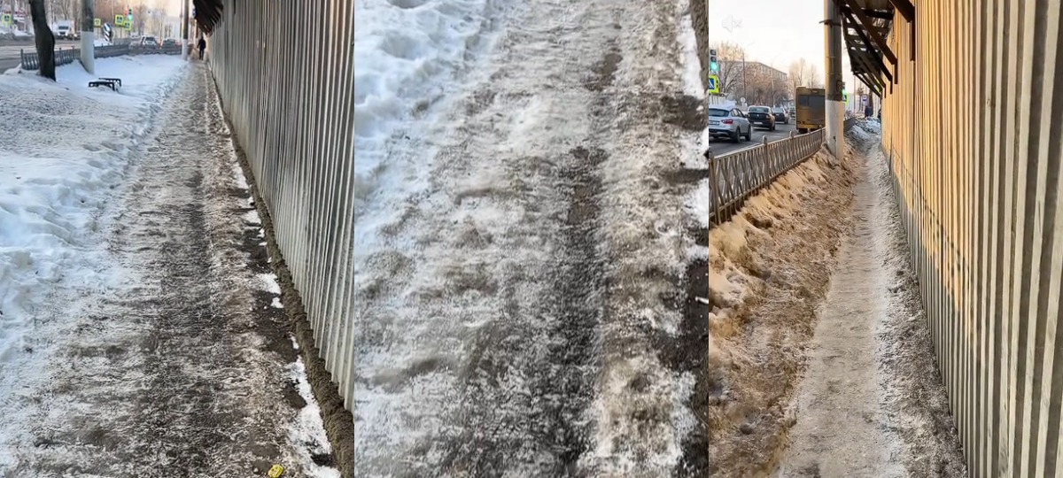На роліку, які апублікавала жанчына, было відаць вялікія, неўбраныя гурбы снегу, да якіх, паводле ўражанняў аўтаркі, камунальныя службы так і не дабраліся. Пешаходам даводзілася ісці па няроўнай паверхні, дзе снег чаргуецца з лёдам і снежнай «кашай».