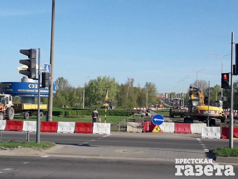 На участке пересечения Варшавского шоссе с бульваром Шевченко и улицей Махновича интенсивно ведутся строительные работы.