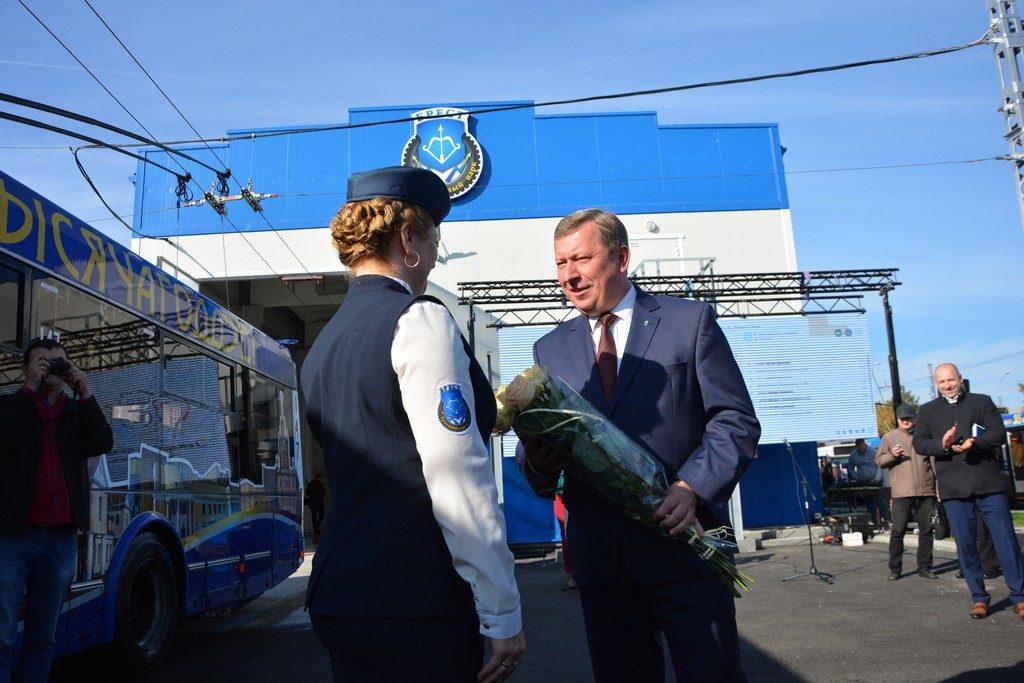 Символично, что первым «клиентом» стал троллейбус с надписью «Миллениум». Он призван ежедневно напоминать жителям Бреста о приближающемся юбилее, и побуждать их внести и свою лепту в подготовку к большому празднику. Его ответственному водителю – Татьяне Поляковой Александр Рогачук вручил цветы.