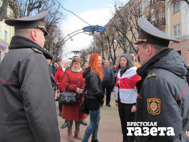 22.03.2017 12:24 Девушка с флагом, Наталья Папкова, на акции протеста в Бресте 12 марта. Источник фото