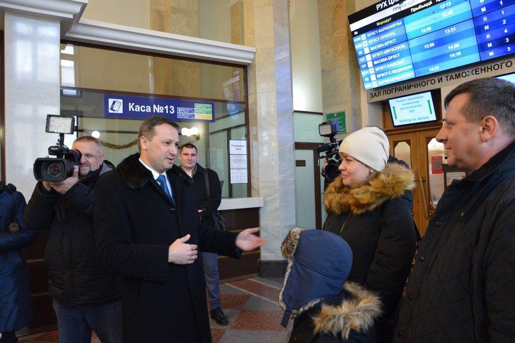 На железнодорожном вокзале Брест-Центральный гостей встретили представители местных органов власти. Зампредседателя горисполкома Сергей Жуков подарил туристам альбом о достопримечательностях Бреста, сообщает БелТА.