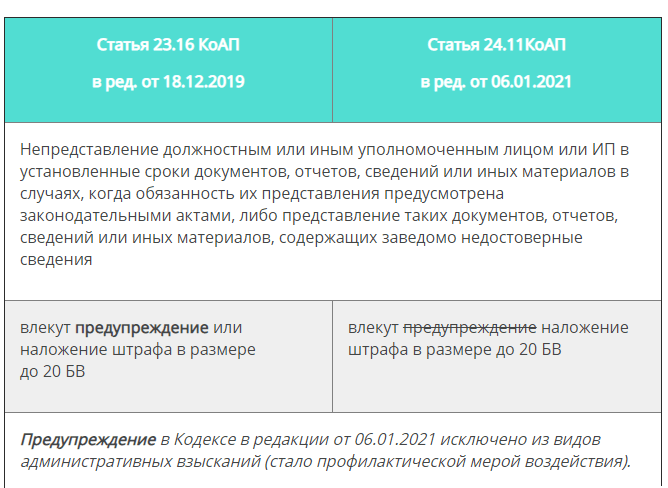 С 1 марта за непредставление в установленные сроки в органы Фонда социальной защиты населения отчетности формы 4-фонд, а также сведений персонифицированного учета будет предусмотрена административная ответственность по статье 24.11 КоАП (до 1 марта действует статья 23.16).