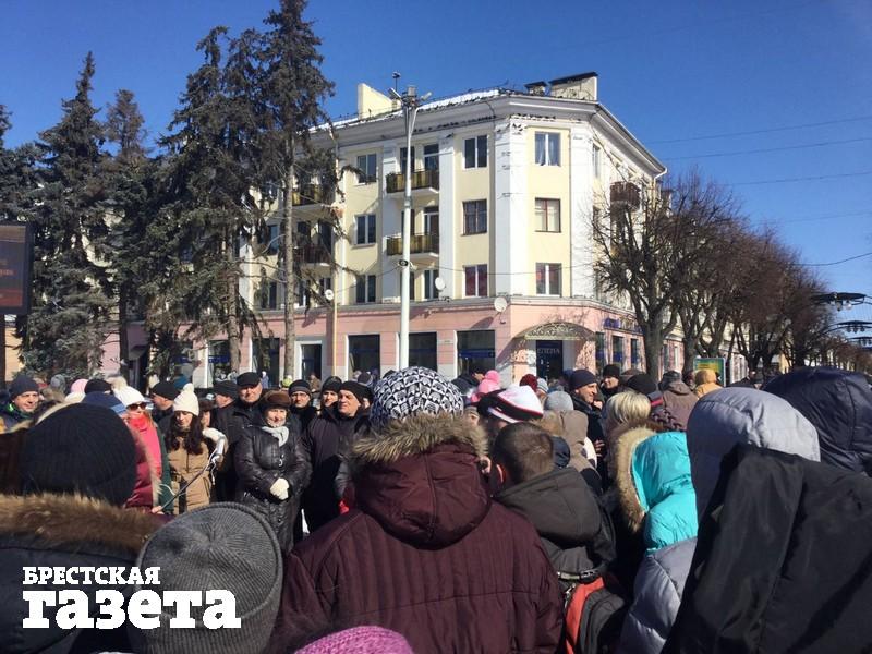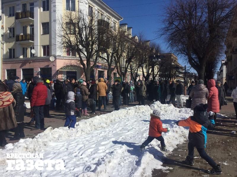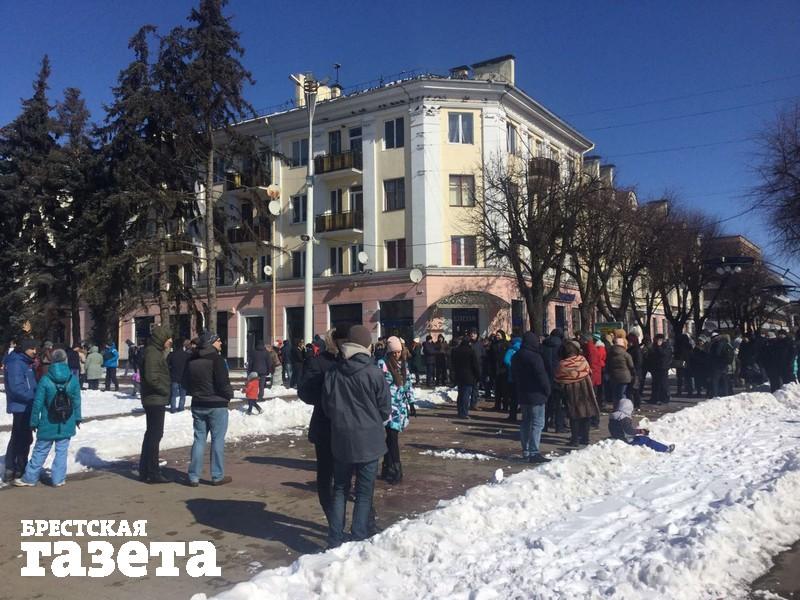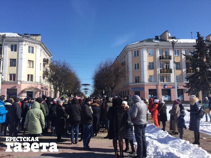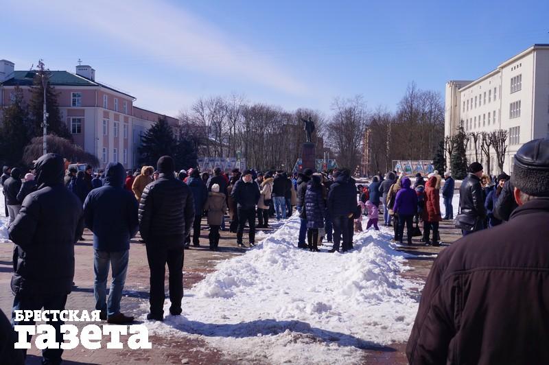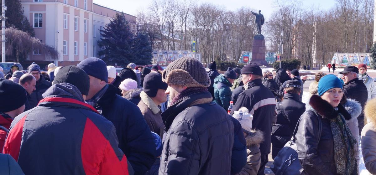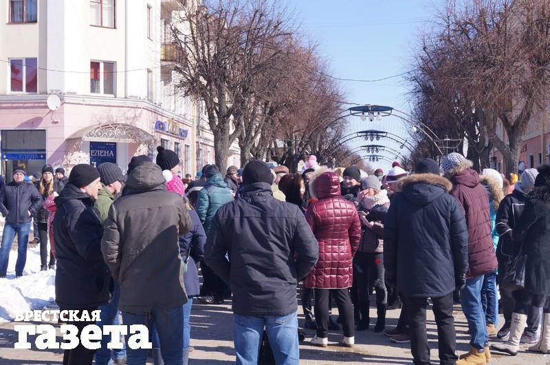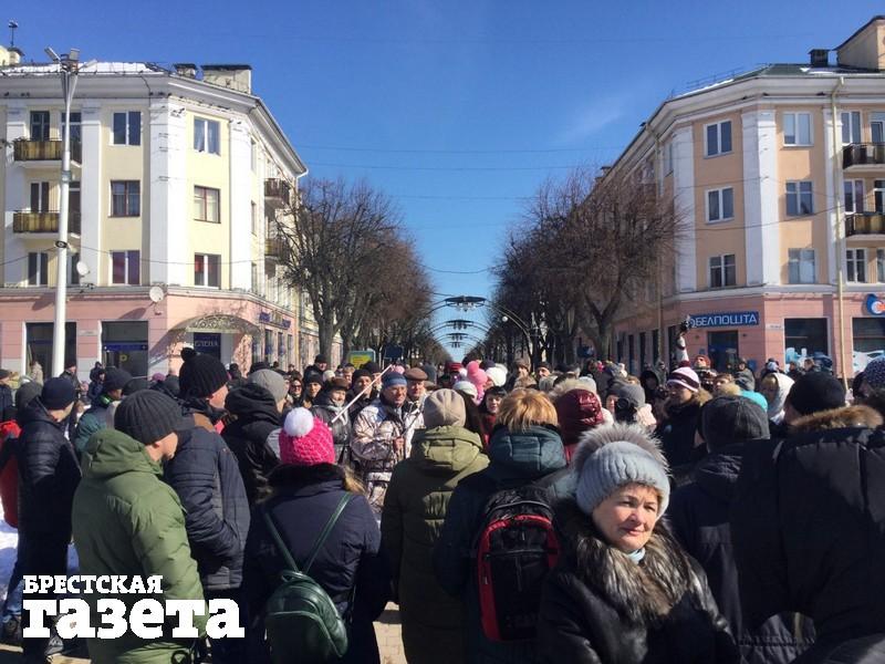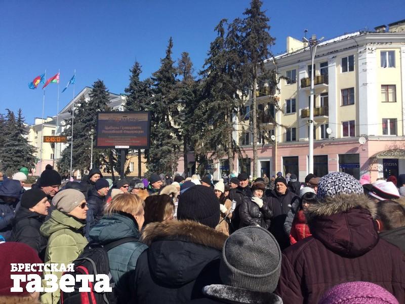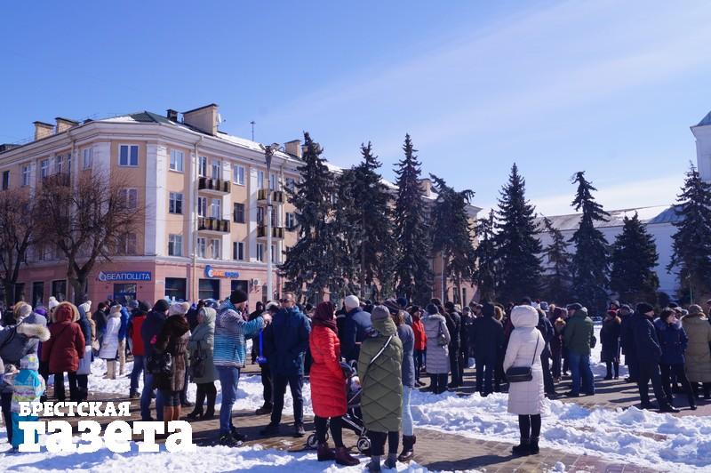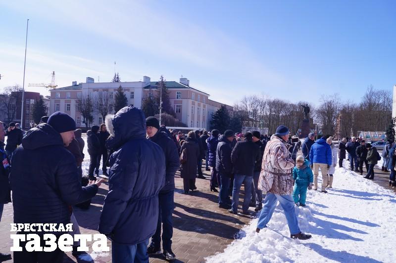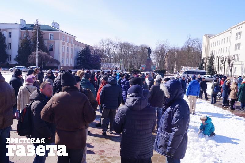 В полдень 18 марта на площади Ленина собрались противники появления в СЭЗ «Брест» аккумуляторного завода «АйПауэр». Несмотря на морозную погоду, покормить голубей пришли по разным оценкам от 150 до 200 человек. Это больше, чем было в предыдущие воскресенья. Кроме того, в этот раз люди были настроены по-другому: смелее, решительнее. Противники завода спели песню «Жить», которая накануне появилась на ютубе, и проскандировали «Нет заводу!»