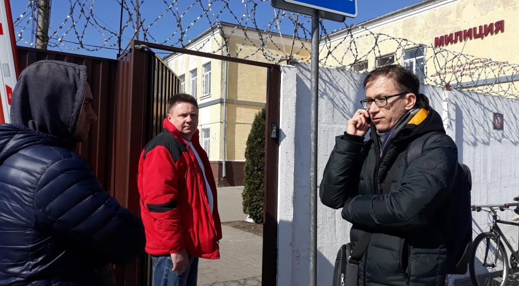 26.03.2018 17:26 Отец мальчика (слева) и группа поддержки у Ленинского РОВД г. Бреста 25 марта. Фото: . Источник фото