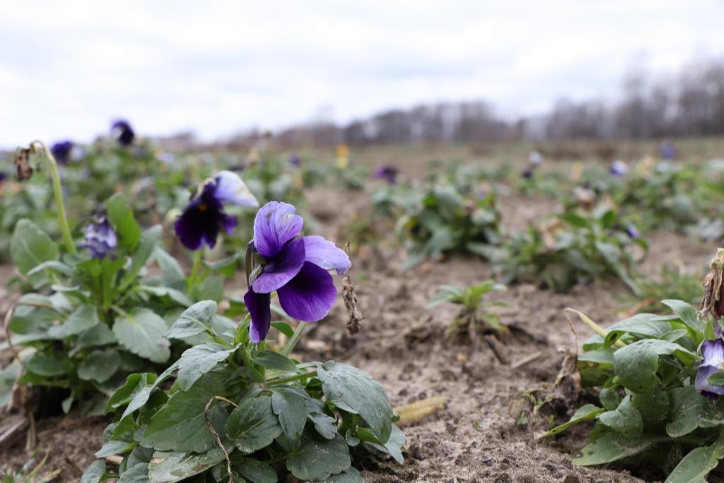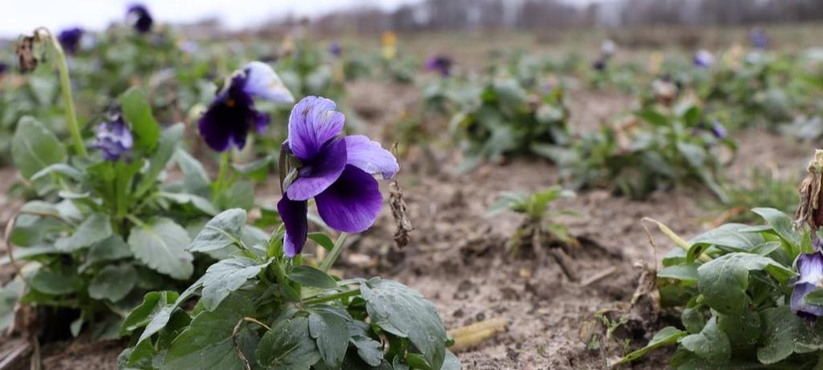А под Кобрином в конце января распустились фиалки. Желтые, синие, белые цветы появились на территории участка «Зеленхоз» Кобринского ЖКХ.