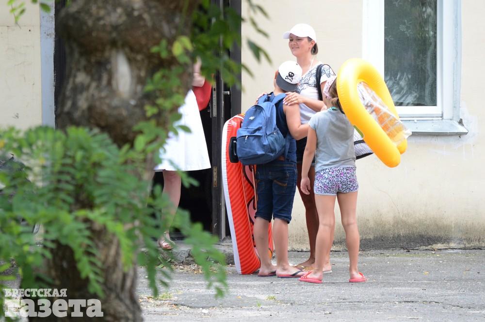Несмотря на то, что на дворе будний день, дети вовсю резвятся на городских пляжах. Им повезло — у детей школьные каникулы.