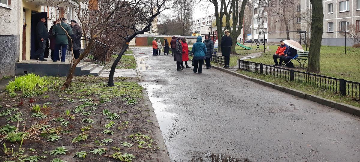 Люди все чаще поглядывают на часы: комиссии, которую ждали в 10 утра, спустя полчаса все еще нет. Однако тот факт, что накануне работники ЖЭС убирали двор и подвал, помыли полы в подъездах, люди связывают именно с ее приездом.