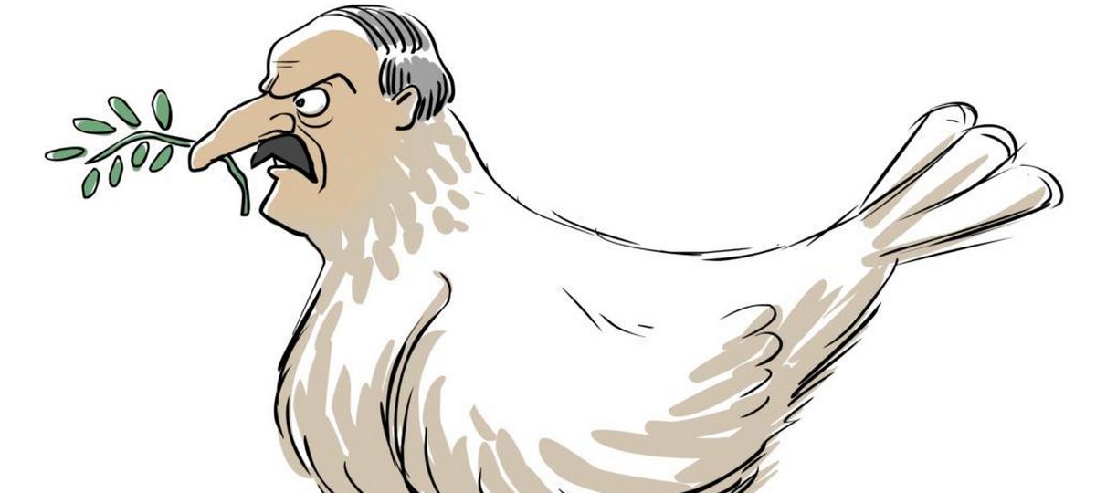 02.04.2024 19:33 Так представляет Лукашенко в роли миротворца карикатурист Сергей Елкин, Радио Свобода. Источник фото