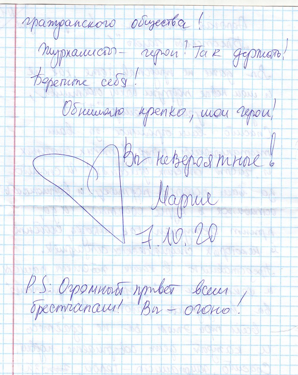 «Огромный привет всем брестчанам! Вы – огонь!» — написала Мария Колесникова в письме «Брестской газете»