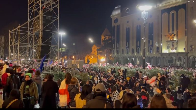 Протесты в Тбилиси. 9 марта 2023 года. Скриншот видео телеграм-канала Николая Левшица