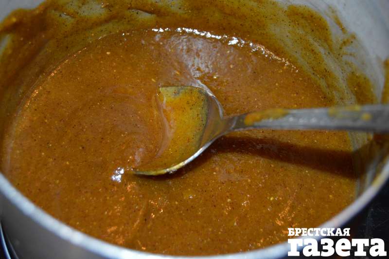 Готовим: Отварите тыкву до мягкого состояния. Слейте воду и пюрируйте тыквенные кусочки блендером. Соедините тыквенное пюре с остальными ингредиентами, необходимыми для приготовления сиропа, и поставьте на небольшой огонь на 12 — 15 минут. Регулярно помешивайте сироп.